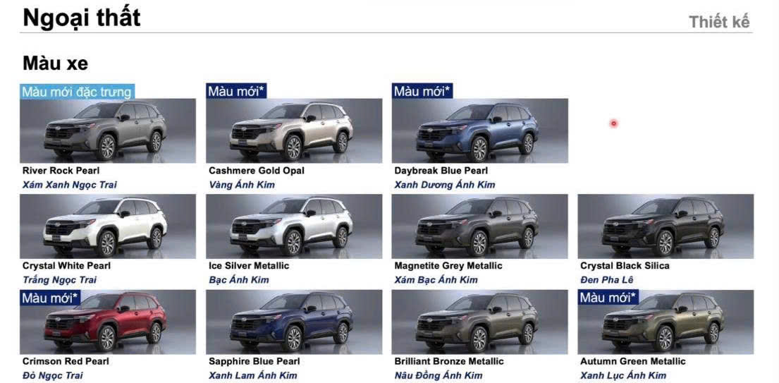 BẢNG MÀU XE FORESTER ALL – NEW